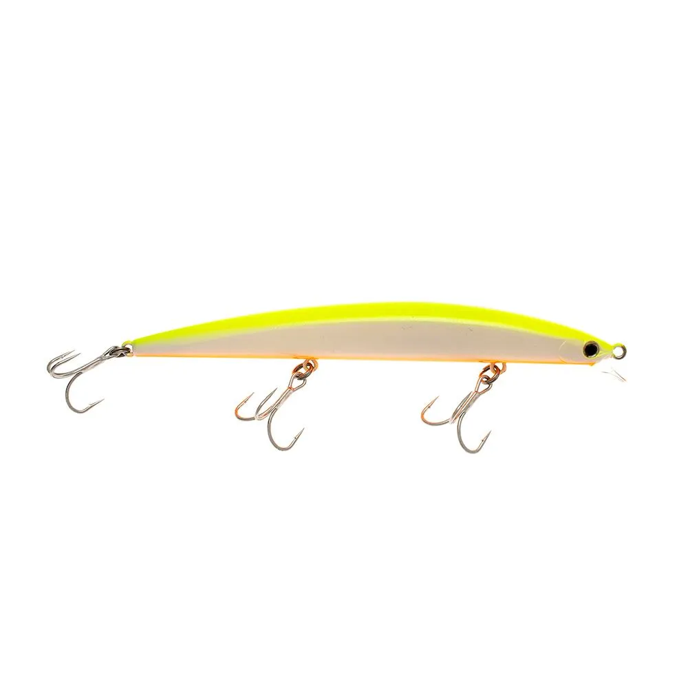 Lo Smith Haluca è un long jerk progettato per la ricerca di spigole e altri predatori in acque basse o in prossimità di scogliere. La particolare forma a V facilità le performance di lancio favorito anche dal sistema di spostamento interno dipesi in acciaio e tungsteno progettato dai tecnici SMITH e denominato "CAST-ABILITY". 2 sfere fisse in coda e 3 sfere mobili assicurano il perfetto bilanciamento interno durante il volo abbassando notevolmente il centro di gravità . Le dotibalistiche del minnow Smith Haluca sono impressionanti, ed in questo modello, più lungo e più pesante, risultano particolarmente evidenziate, rendendo l'Haluca la scelta ideale per sessioni di pesca con forte vento. La forma di questo artificialeè diversa dai soliti slim disponibili sul mercato. L'Haluca è infatti più sottile per tutta la sua lunghezza e nella parte inferiore presenta una sezione con una V più pronunciata e piatta sul fondo. La paletta è molto più piccola e posizionatapiù avanzata rispetto all'asse dell'artificiale. In acqua l'Haluca produce vibrazione stretta dovuta al profilo e al sistema interno dei pesi. Il wobbing è poco pronunciato a bassa velocità, ma aumenta a velocità di recupero più elevata. I riflessidi luce creati dalla speciale superficie di questi artificiali sono irresistibili ai predatori. Colori particolarmente addescanti rifiniti con trattamento anti abrasione estremamente efficace. Artificiale ideale per serra, spigola, barracuda,leccia, palamita.